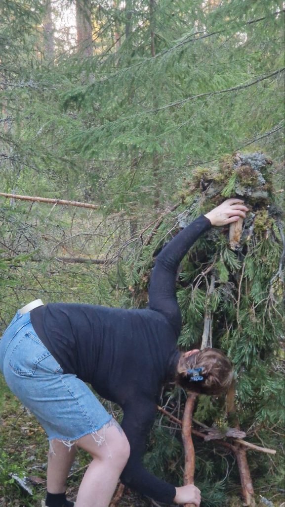 Kurssin ”metsäosuus” oli tällä viikolla jo neljättä kertaa Evon Rahtijärven kämpällä, jossa moninaiset huolenpidon tavat muodostivat jälleen päiviään pidemmältä tuntuvan aika-paikkakokemuksen. Tänä vuonna 2 opiskelijaa näki majavan(!) (muut jäivät kateellisina kiikaroimaan) ja laulettiin karaokea (niin kauniisti). Ruoka, jota ryhmät valmistivat rakkaudella, oli taivaallista ja sauna helli. Sekä tietenkin tärkeimpänä opiskelijoiden ja opejen Minnan ja Henrikan taiteelliset prosessit täyttivät päivät ja johtivat monenlaiseen, joka jatkuu vielä.